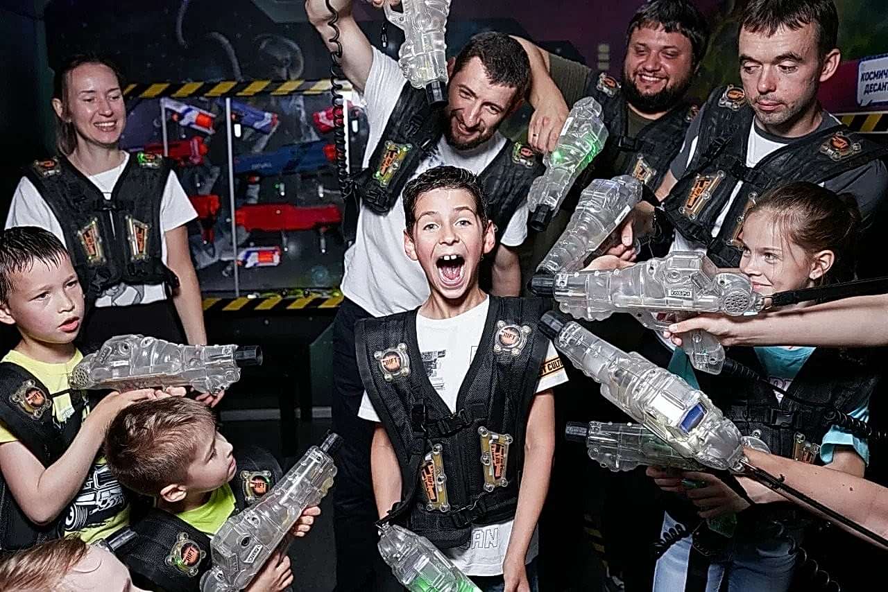 Игра в лазертаг безопасна и подходит детям от 6 лет. Задача игроков - стрелять из специального бластера по датчикам, расположенным на жилетах игрока. Pin-Up работы такой же, как в вашем пульте от телевизора. Между игроками не происходит физического контакта.